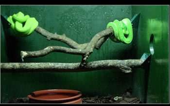 | Our arborial tropicals are housed in cages heated externally from above, in order to provide warm air as opposed to a warm surface. | ||||||||||||||